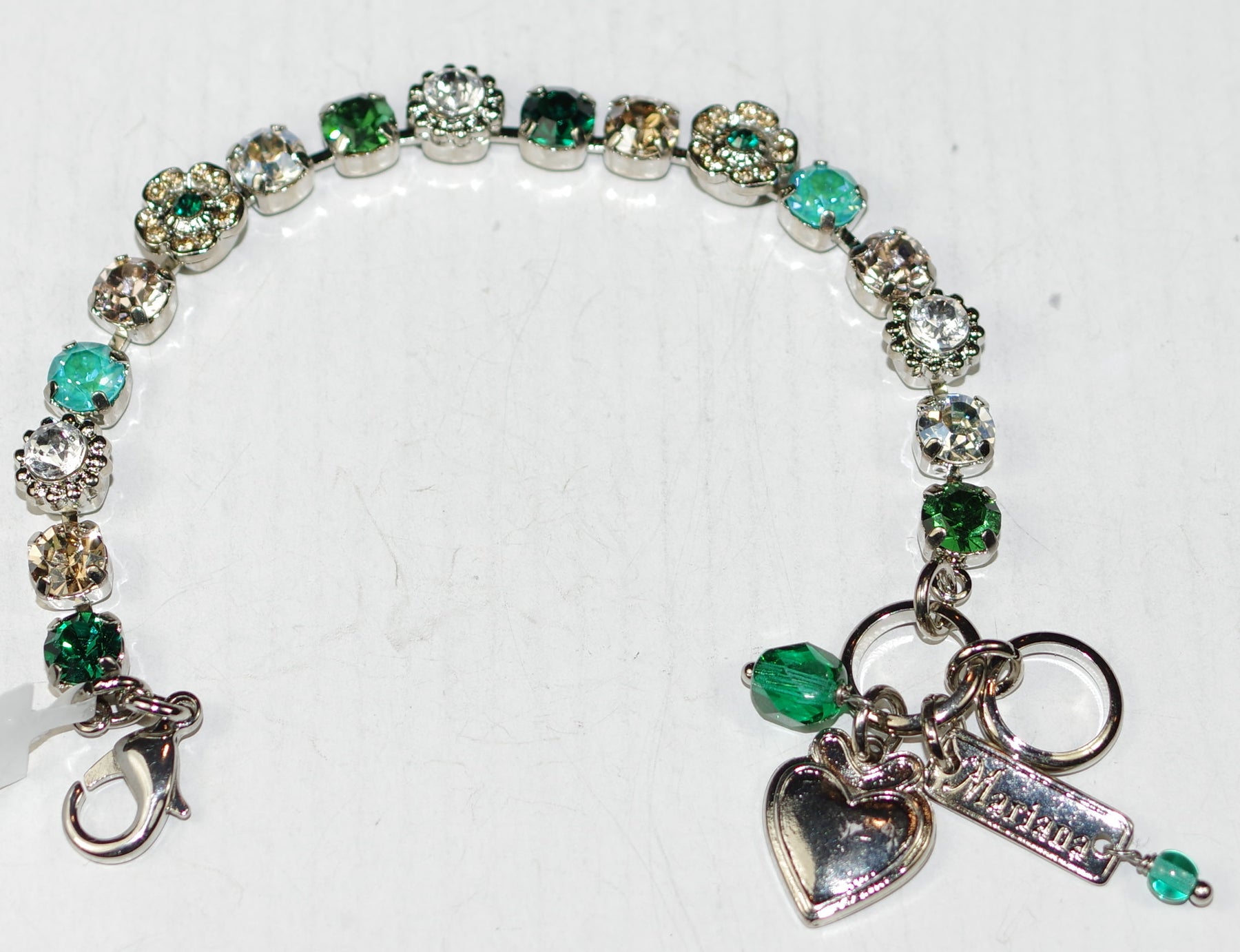 MARIANA BRACELET CIRCLE OF LIFE: green, amber, clear 3/8" stones in silver rhodium setting