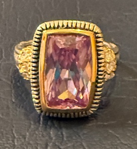 STERLING SILVER LARGE LAVENDER CZ RING SIZE 9